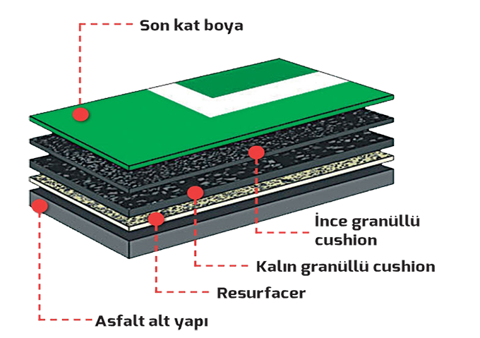 – Eskişehir'de Akrilik Zemin Nasıl Uygulanır?; Akrilik kaplama, istenilen renkte 2-3 mm kalınlığında 4-11 katman olarak uygulanır.